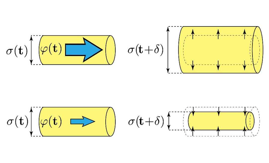 Figure 3. Illustrating the core feedback mechanism of slime mold intelligence: tubes expand when flow is high and contract when low, allowing the network to self-organize and find efficient paths without central planning.